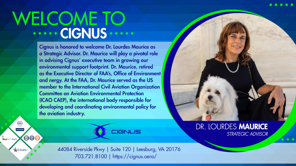 Cignus is honored to welcome Dr. Lourdes Maurice as a Strategic Advisor. Dr. Maurice will play a pivotal role in advising Cignus’ executive team in support of our growing airport/airspace development, environmental compliance and sustainability practices. We at Cignus are fortunate to have someone like Lourdes be a part of